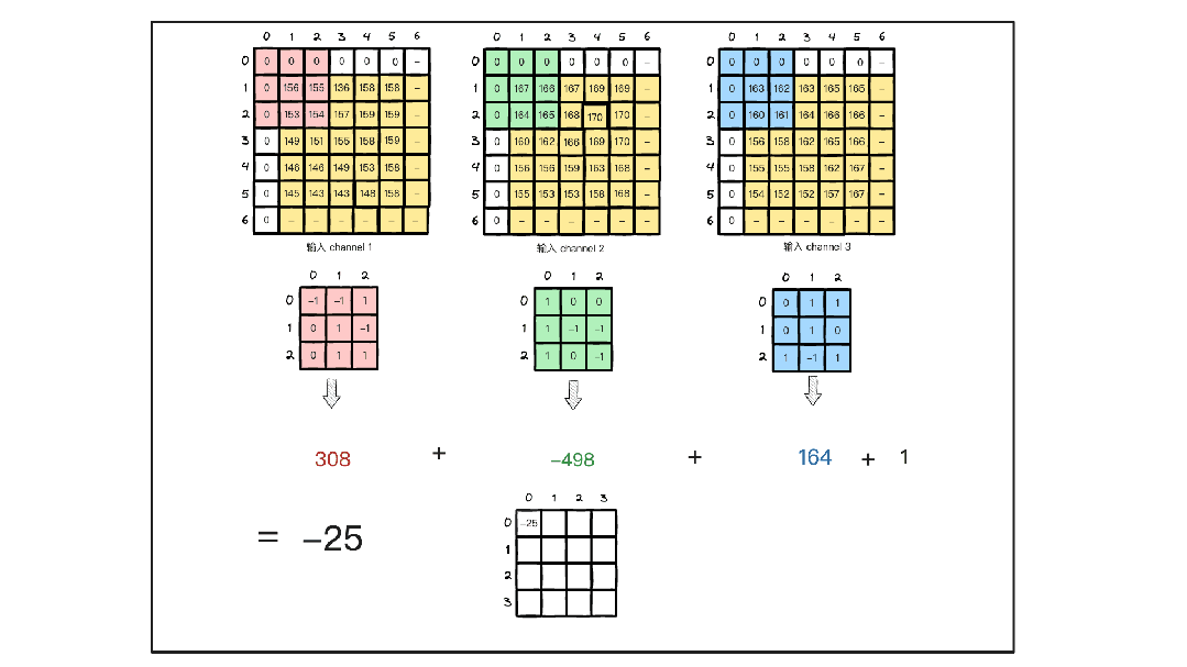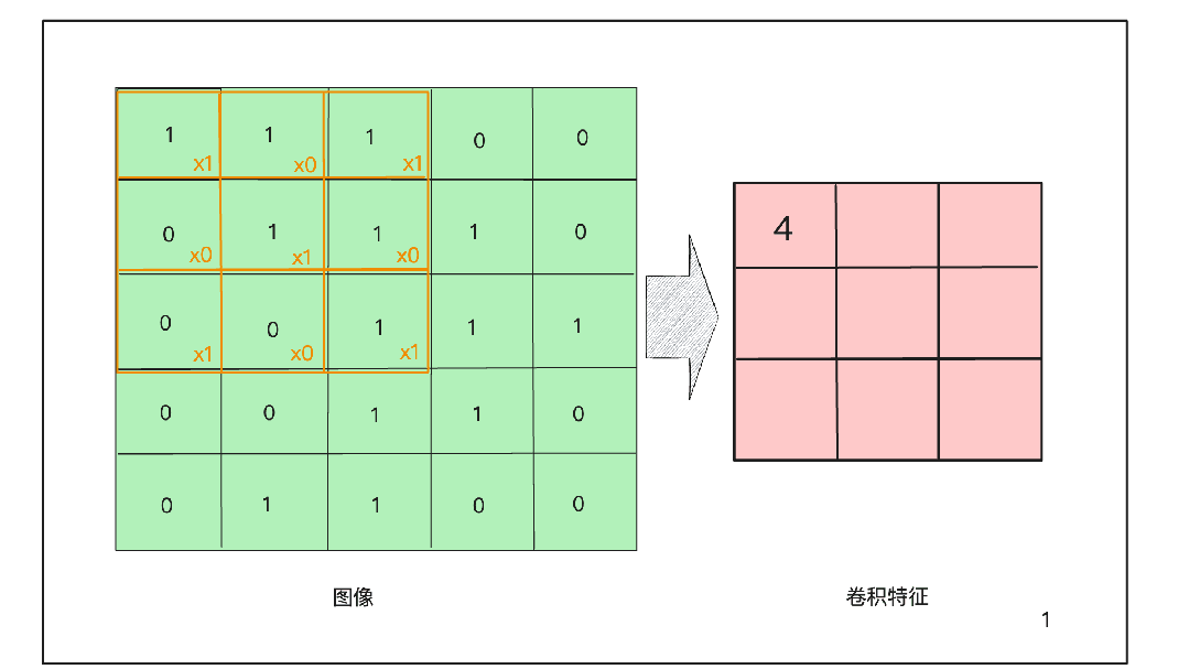 用 3x3x1 内核卷积 5x5x1 图像,得到 3x3x1 卷积特征