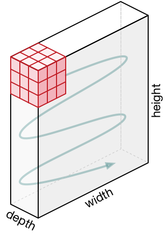 滤波器以一定的步长值向右移动,直到解析完整的宽度。接着,它会以相同的步长值跳到图像的起点(左侧),并重复这一过程,直到遍历整个图像。