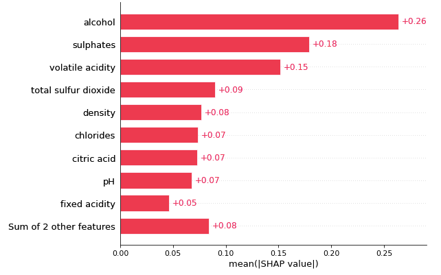 shap.plots.bar(shap_values, max_display=10) # default is max_display=12