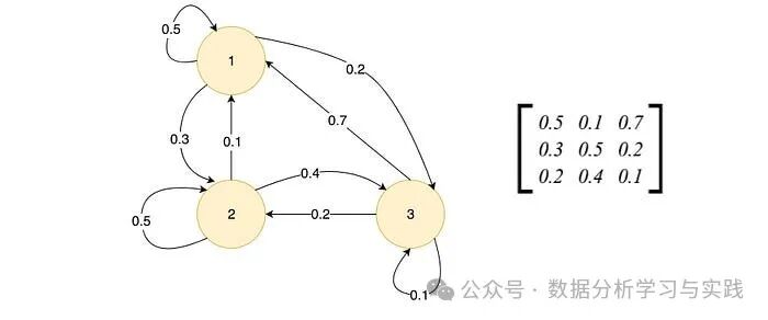 马尔可夫矩阵具有一些重要特性。 或 的结果总是与列相加为一。右边项是每次点击后分别进入第 1、2 和 3 页的几率。因此很明显,它的总和应为 1。