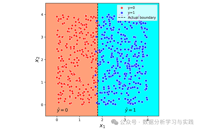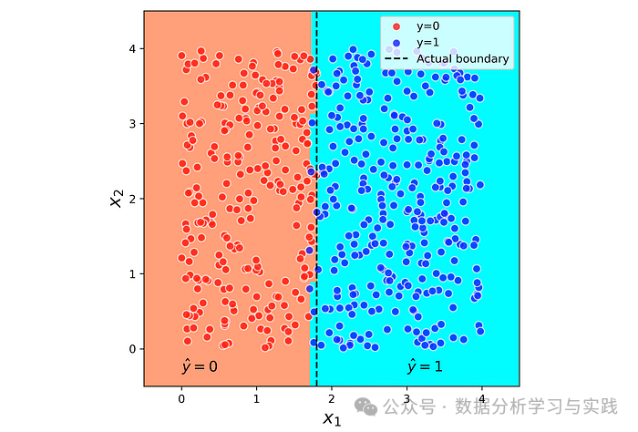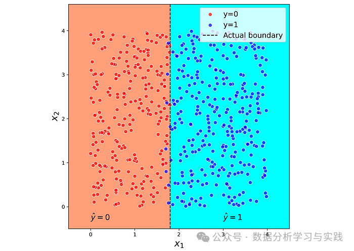 我们可以将该概率与阈值进行比较,以获得二元目标的最终预测。该阈值通常为 0.5。如果 则预测目标为 1,否则为 0。