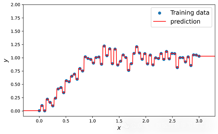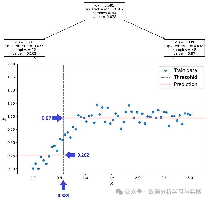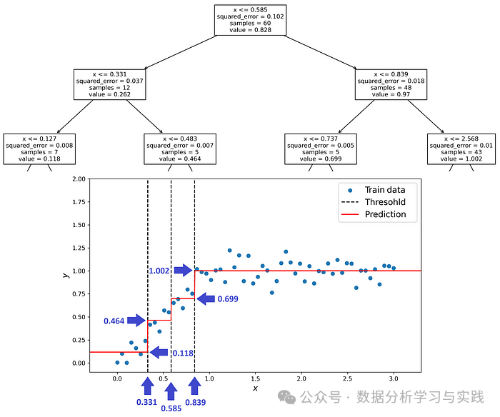 现在,我们训练另一个浅层决策树,以 为特征,以 为目标。该模型的预测由 表示,并添加到 中:
