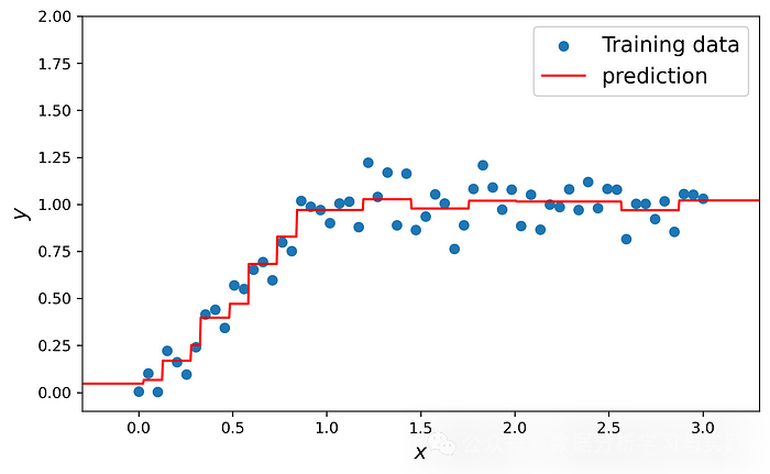 当然,如果数据点不在训练数据集中,我们不知道y的值。因此,在每一步中,我们都会训练一个弱模型来预测它。该模型采用特征 并预测残差: