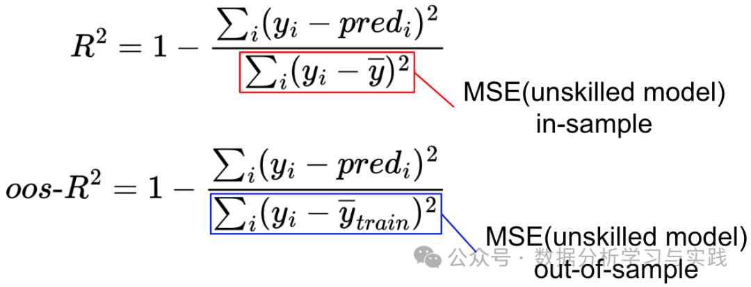 使用训练集而非测试集目标变量的均值,可以将传统的 R-方 转化为 样本外 R-方 :