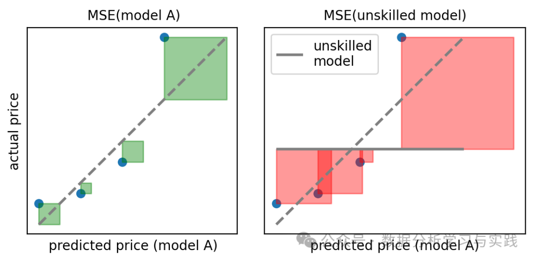 让我们直观地比较一下模型 A 的 MSE 和非熟练模型的 MSE。