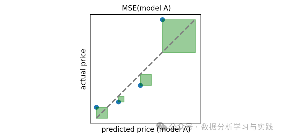 模型 A 的均方误差 MSE 是绿色方格的平均值。