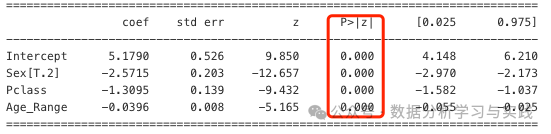 Statsmodels报告说,我们的模型有三个自由度。性别、Pclass和Age_Range,与预想相同的。 4. 自由度