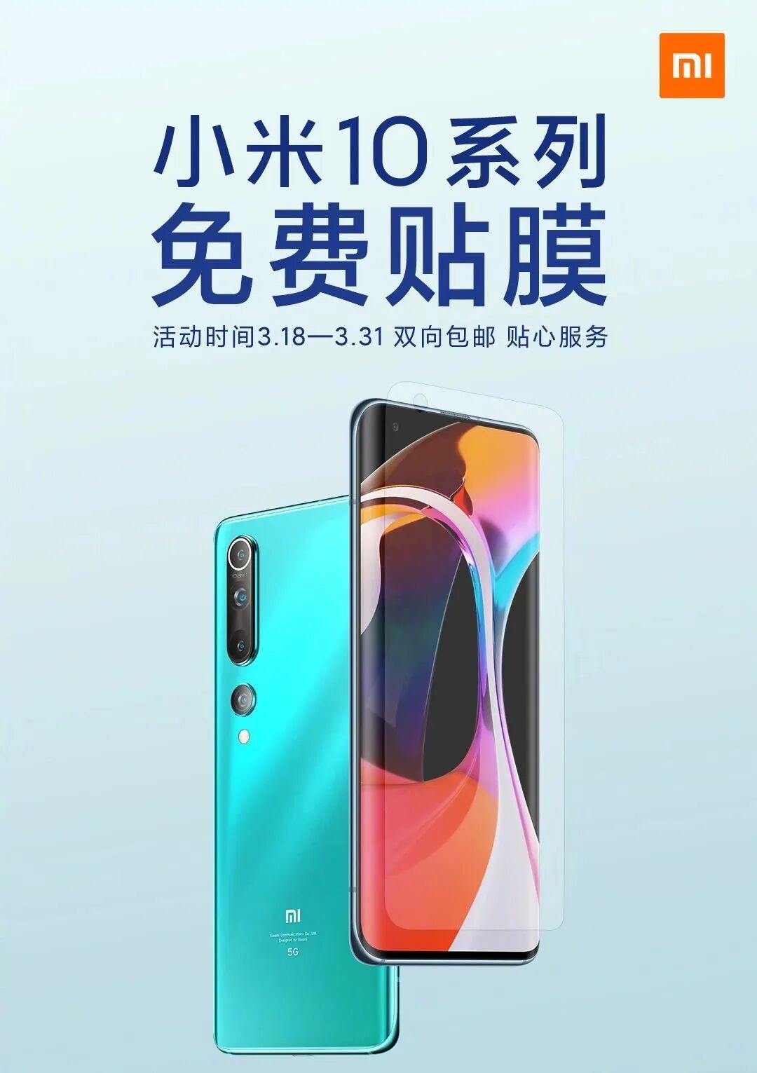 【品牌】曲面屏膜不好买?小米10/Pro推出包邮免费贴膜活动