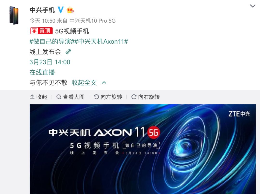 另外就是中兴手机的消息了,今天上午,中兴突然宣布将于3月23日14:00举行「中兴天机Axon 11」5G视频手机线上发布会。3C认证还显示其配备18W快充。