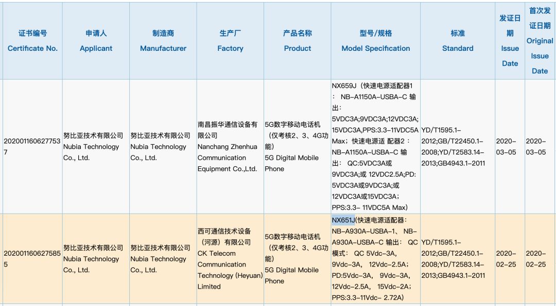 3C认证显示,其型号为NX651J,最高支持30W快充。(作为补充,红魔5G游戏手机型号为NM659J,配备55W快充)