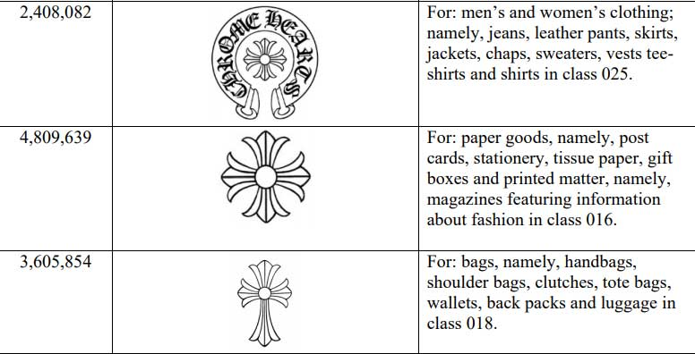 Notice of Claims involving Trademarks by Chrome Hearts, LLC