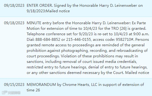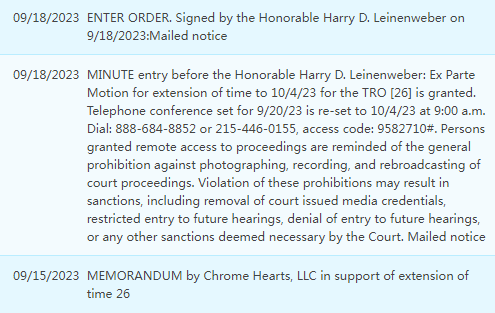 23-cv-5932案件号Chrome Hearts 克罗心 美国商标侵权起诉赔偿金额 GBC律师律所 (Greer Burns & Crain) 延长TRO