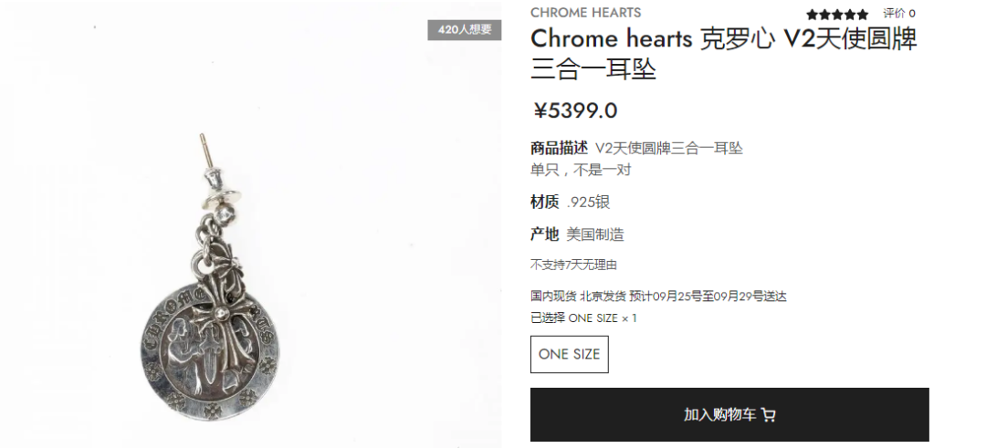 侵权预警词:Chrome Hearts 克罗心