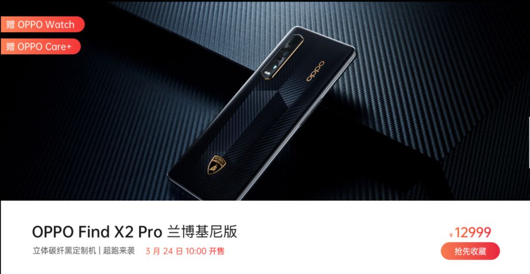 至于开卖时间价格,OPPO Find X2兰博基尼版(12+512GB)售价12999元,各大平台均支持24期免息,购机即送价值1999元的OPPO Watch 46mm曜黑版,将于明天3月24日上午10点正式开卖。