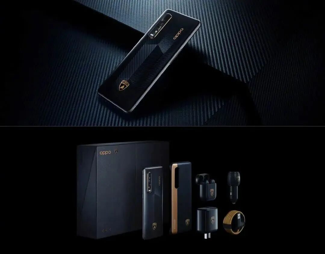 据了解,OPPO Find X2 Pro 兰博基尼版采用“热吸玻璃工艺”,碳纤维纹理,兰博基尼logo立体悬浮效果,同时以兰博基尼元素定制耳机、保护壳等配件,除了手机外,包装盒内还有 超纤黑金拼接保护壳,65W超级闪充充电器+数据线,车载超级闪充,无线蓝牙耳机。