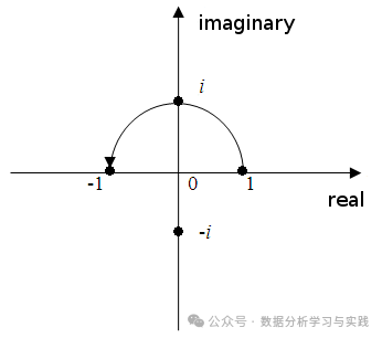 以数字 1 为例。这个数字与正实数一起位于实数线的右侧。将 1 乘以 ,就得到了数字 ,即从初始点 1 旋转了 90 度。再乘以两次,我们又回到了起点。