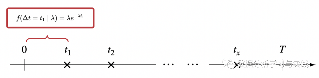 第一笔交易发生在 的可能性是用我们前面阐述的指数分布来描述的。