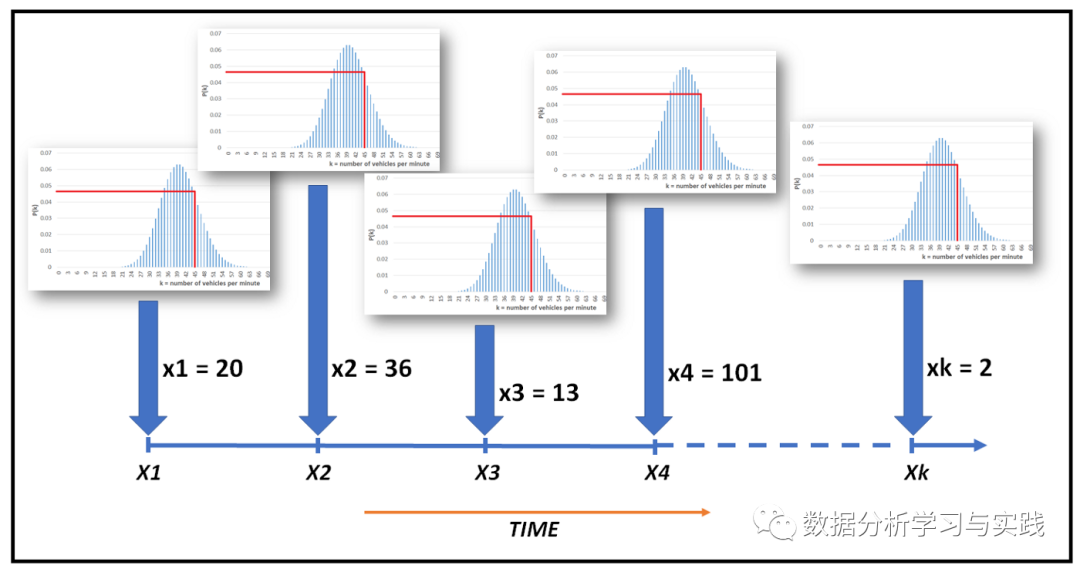它是由一连串的随机变量 X1, X2, X3, ...Xk 组成的,每个变量代表某个事件的发生次数,例如,在某个时间段内病人走进急诊室的数量。 -