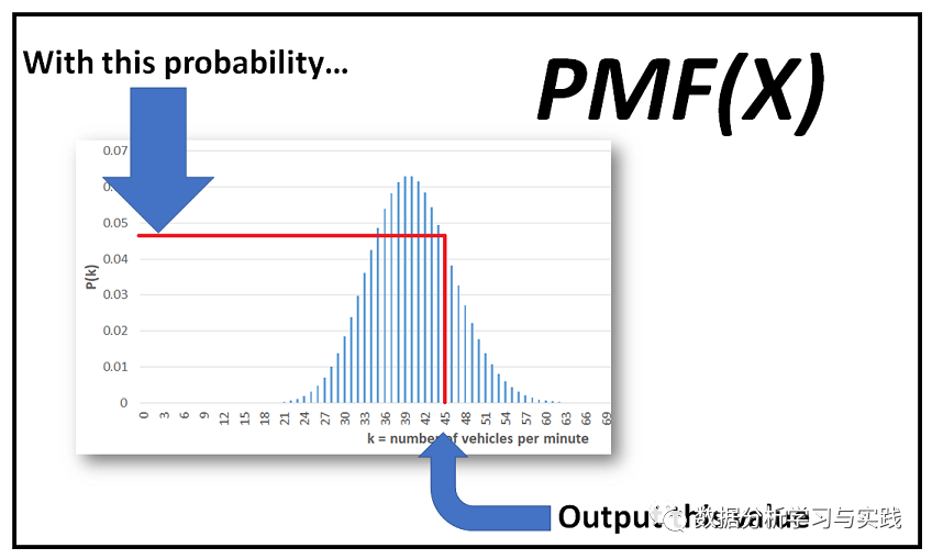 一个离散的随机变量的范围是可数的无限的,例如整数的集合。离散 X 的一个现实例子是在某个时间间隔内通过一个十字路口的汽车数量。离散随机变量的概率分布被称为Probability Mass Function(PMF)。