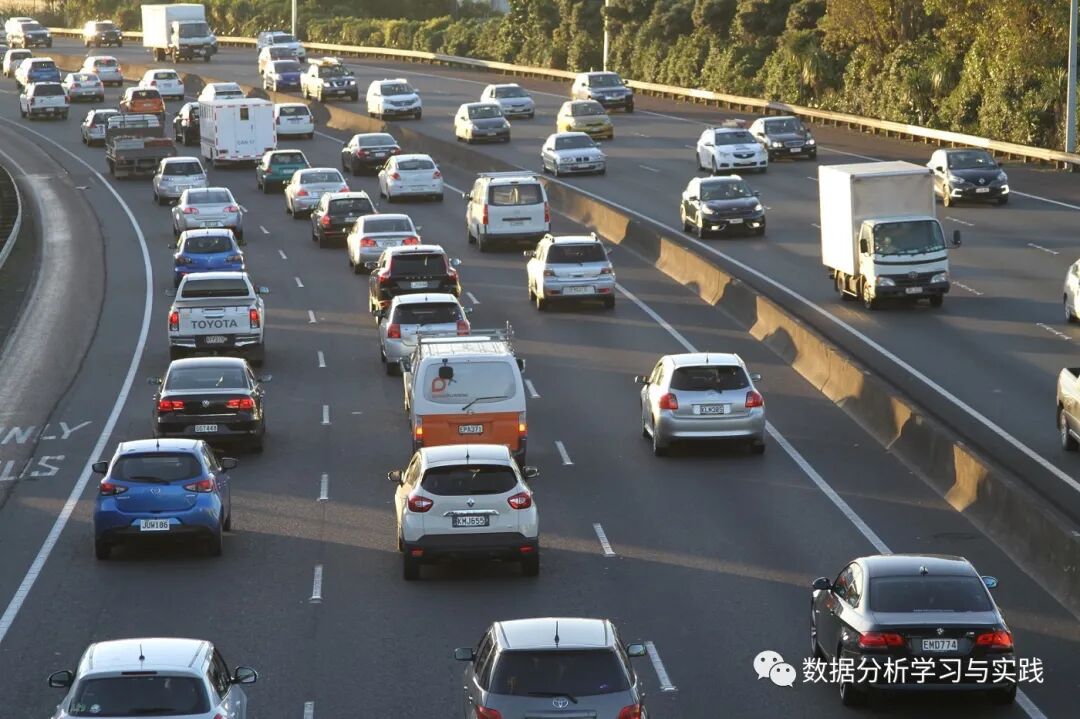 平日上午8点到11点,通过某个十字路口的车辆数量。 -