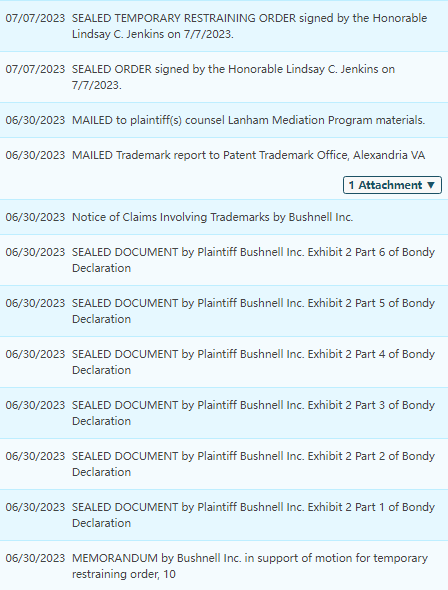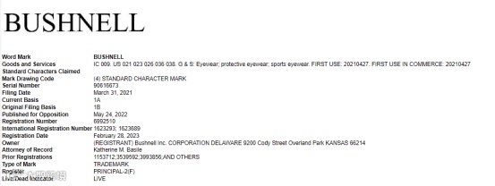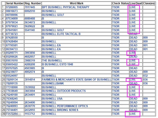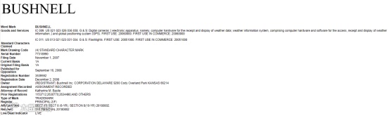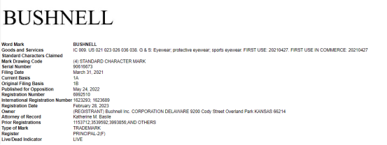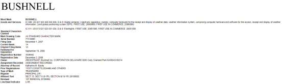 Notice of Claims Involving Trademarks by Bushnell Inc.