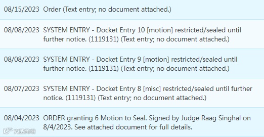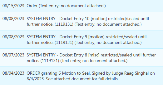 SYSTEM ENTRY - Docket Entry 10 [motion] restricted/sealed until further notice. (1119131) (Text entry; no document attached.)