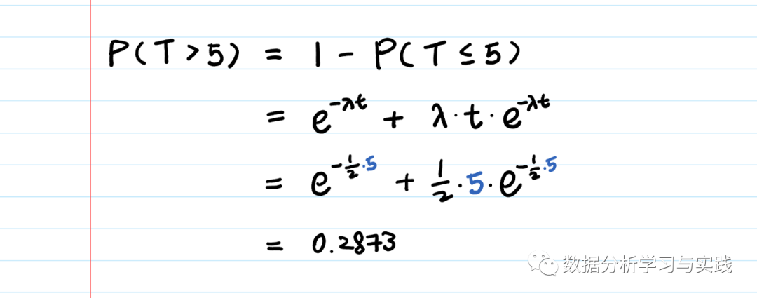 答案是独立指数分布的随机变量的总和,即Erlang(n,λ)分布。Erlang分布是Gamma分布的特例。Erlang和Gamma之间的区别在于,在Gamma分布中,n可以是非整数。