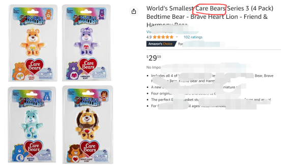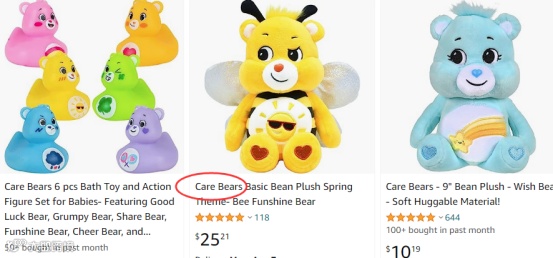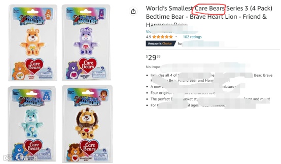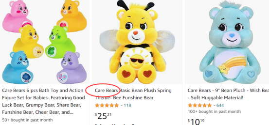 大家要注意不能直接在Listing标题、产品描述使用Care Bears词组或将其图形商标印在产品及产品外包装上。