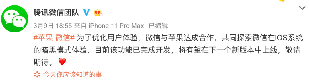 小白刚开始看到的时候还以为是啥头条文章,想着以苹果和微信的尿性应该不会搞强制、警告这么严重的措辞,结果万万没想到 半个小时后 腾讯微信团队就发布相关通知了。