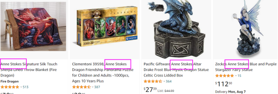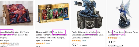 Anne Stokes维权的内容,来来去去都是那22张作品和“ANNE STOKES”商标,只要稍微长点心,规避他家侵权真心不难呀。