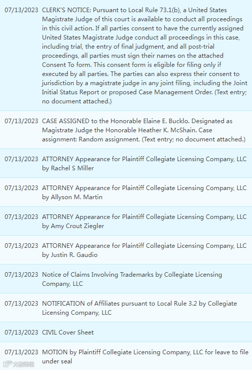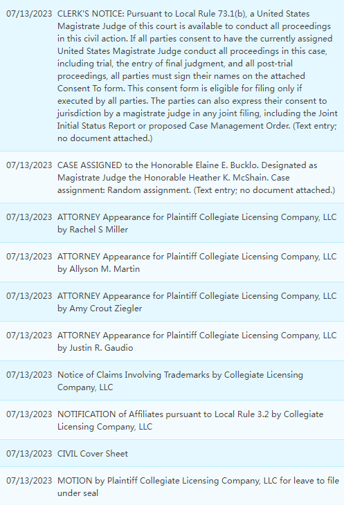 ATTORNEY Appearance for Plaintiff Collegiate Licensing Company, LLC by Rachel S Miller