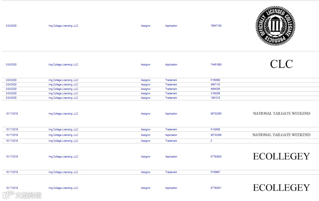 Collegiate Licensing Company(CLC)由比尔·巴特尔(Bill Battle)于 1981 年在阿拉巴马州塞尔玛创立,是美国最大、历史最悠久的大学许可公司,目前为 200 多所学院和大学、体育会议、碗赛、海斯曼奖杯和 NCAA 提供服务。该公司总部位于亚特兰大,还在亚利桑那州、堪萨斯州和蒙大拿州设有卫星办事处。2007年5月1日,CLC被IMG收购。