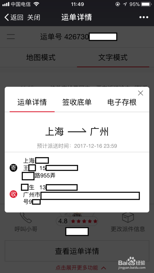 ⑦点击下方的【查看运单详情】,此时显示运单的寄件方和收件方信息