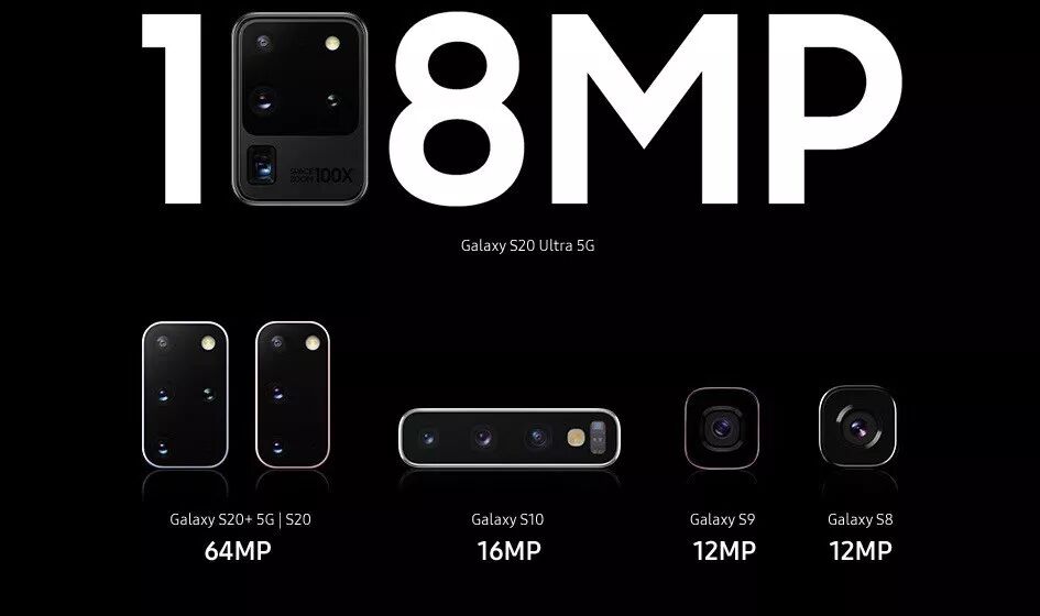 三星Galaxy S20 UItra后置四摄108MP主摄+索尼IMX586 48MP长焦+12MP超广+TOF,支持100X混合变焦,国行骁龙865,5000mAh。
