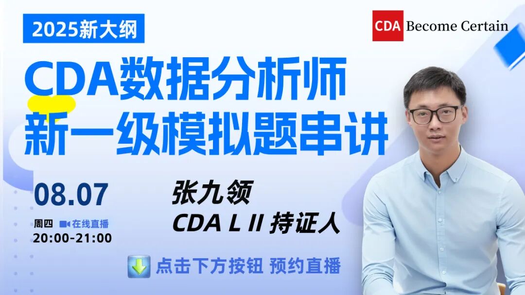 CDA报考人群:无论是报名参加CDA Level I、Level II还是Level III等级考试的考生,课程内容紧密围绕CDA考试大纲,帮助你高效备考,顺利拿证,提升在数据分析领域的专业认可度。