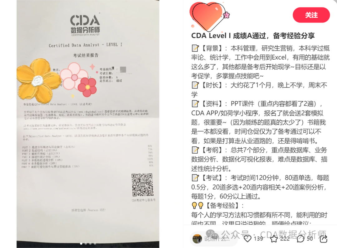 在小红书笔记结尾加以下3个话题:#CDA 数据分析 #CDA 证书 #考证