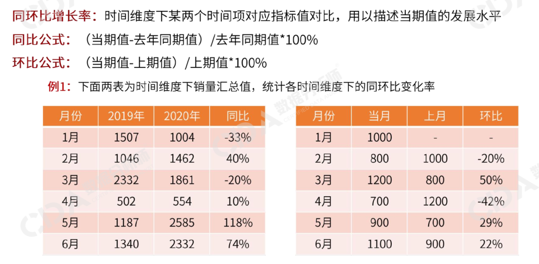 变化率:同一事务在不同时间点的数值比较,如同比、环比。
