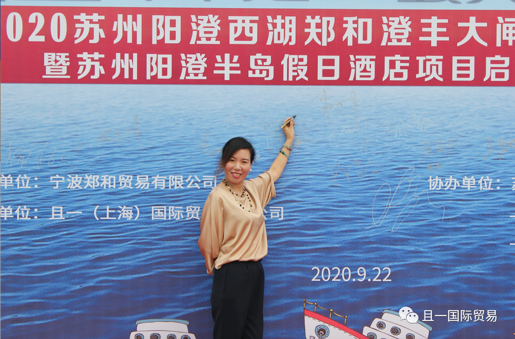 郑和贸易董事长游纪见先生与且一国际总经理陈琼女士共同揭牌