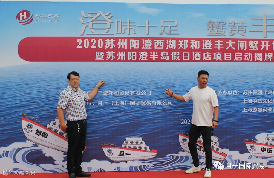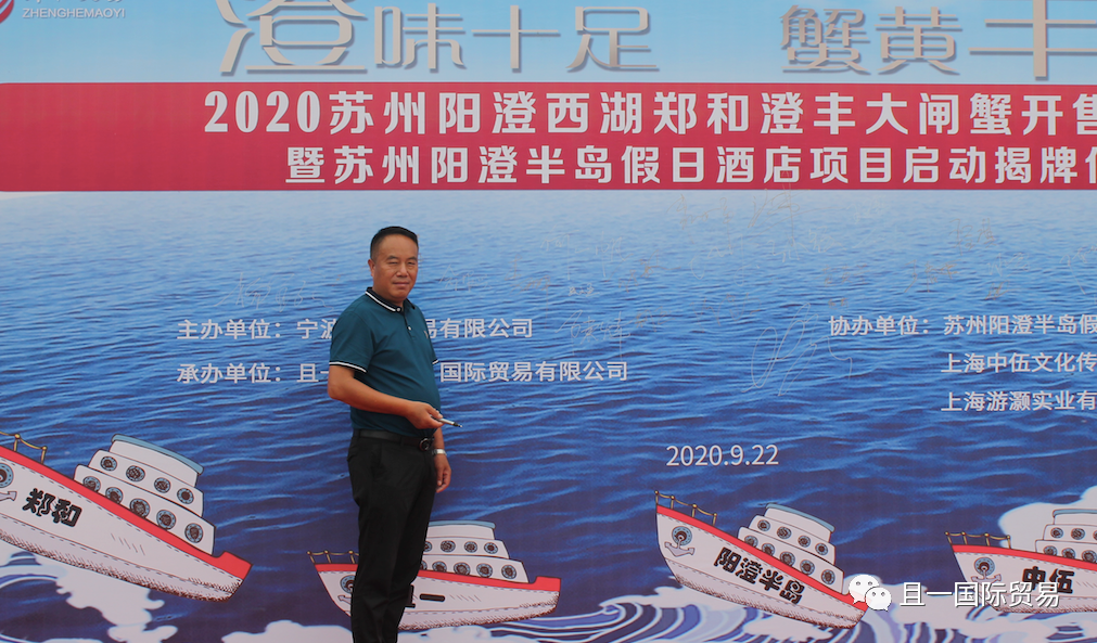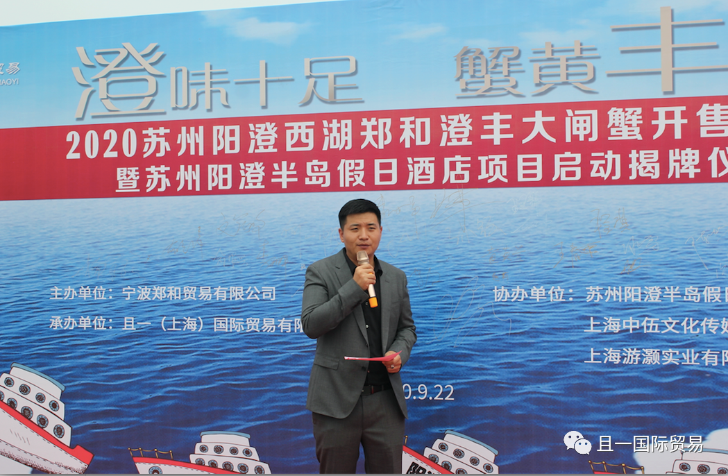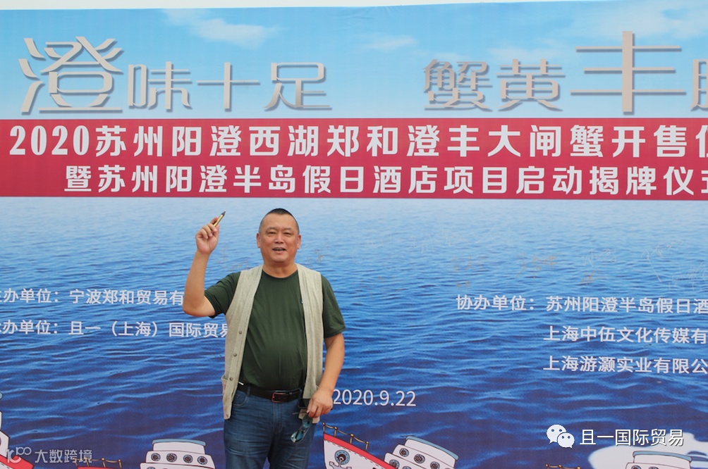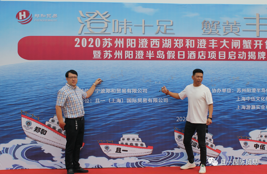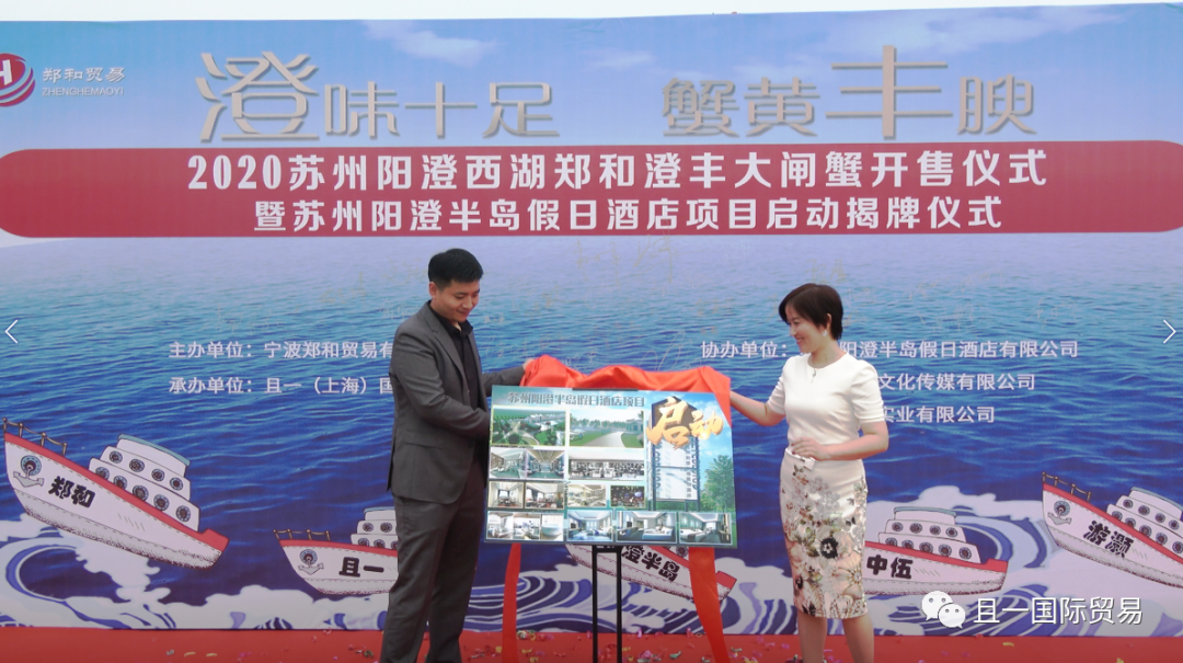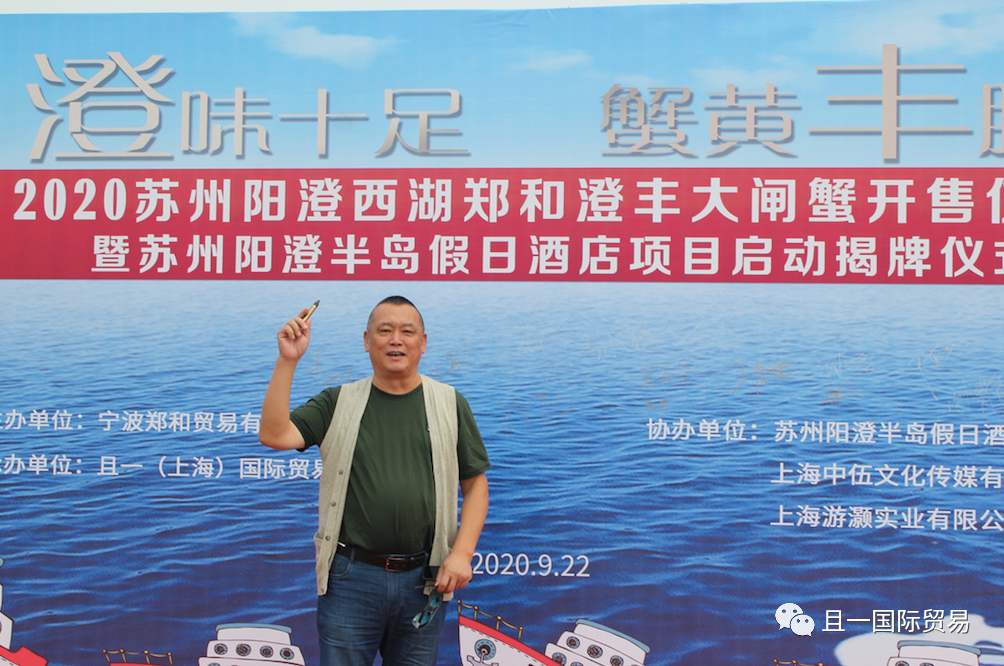 金秋时节,菊香蟹肥。9月22日上午,众多嘉宾聚首碧波荡漾的阳澄西湖湖畔,共同见证了由宁波郑和贸易有限公司携旗下且一(上海)国际贸易有限公司、苏州阳澄半岛假日酒店有限公司、上海中伍文化传媒有限公司、上海游灏实业有限公司共同举办的“2020苏州阳澄西湖郑和澄丰大闸蟹开售仪式暨苏州阳澄半岛假日酒店项目揭牌仪式”。