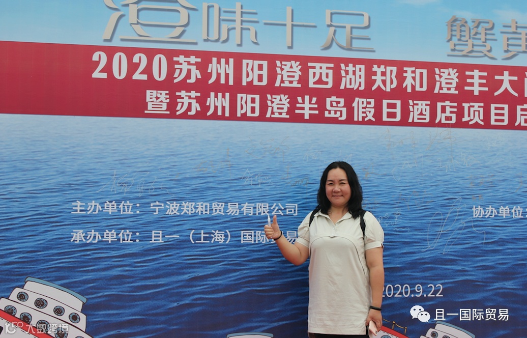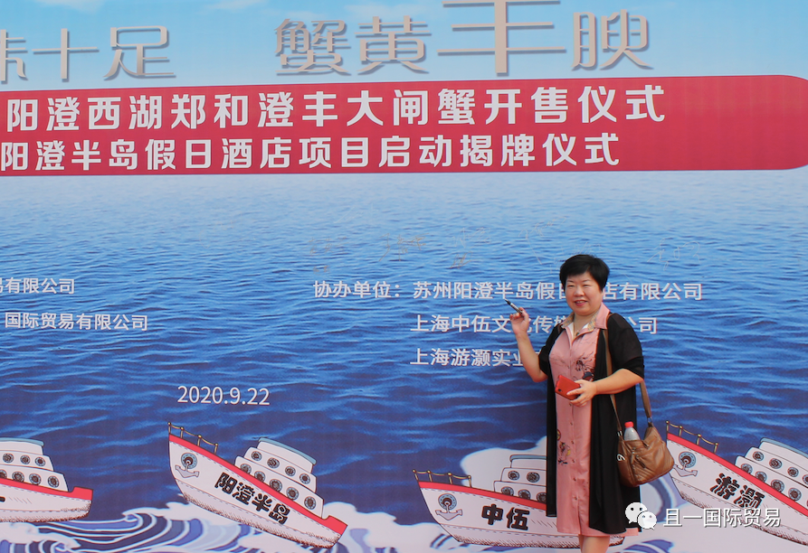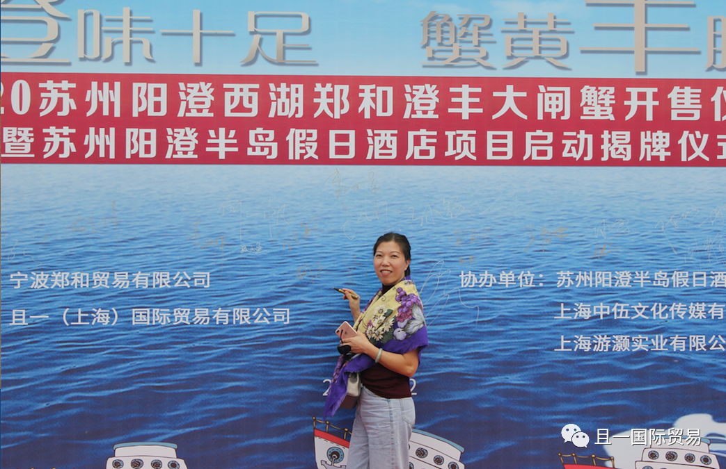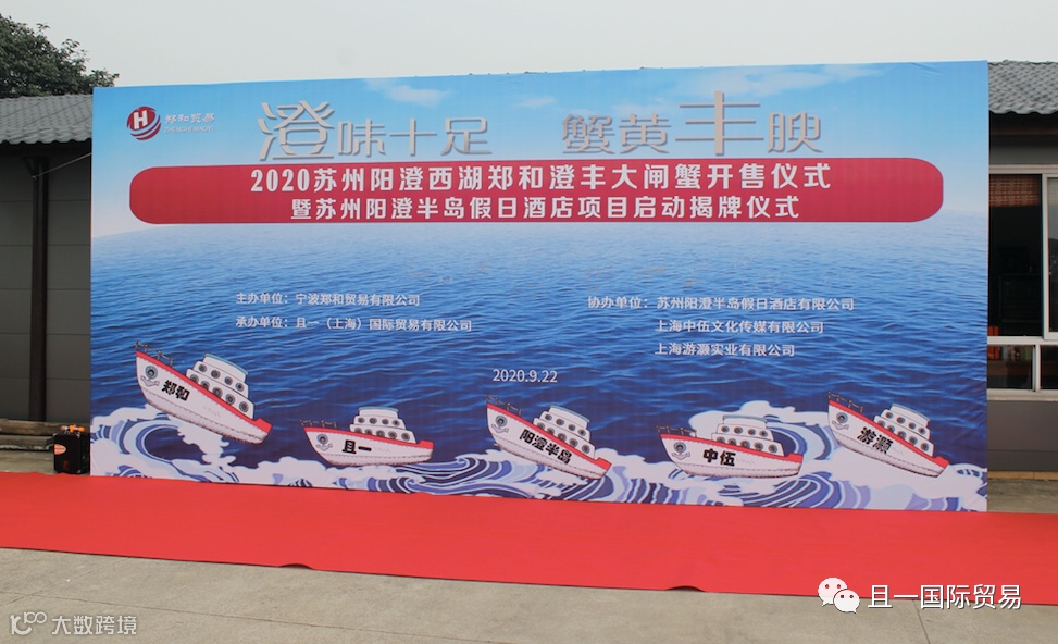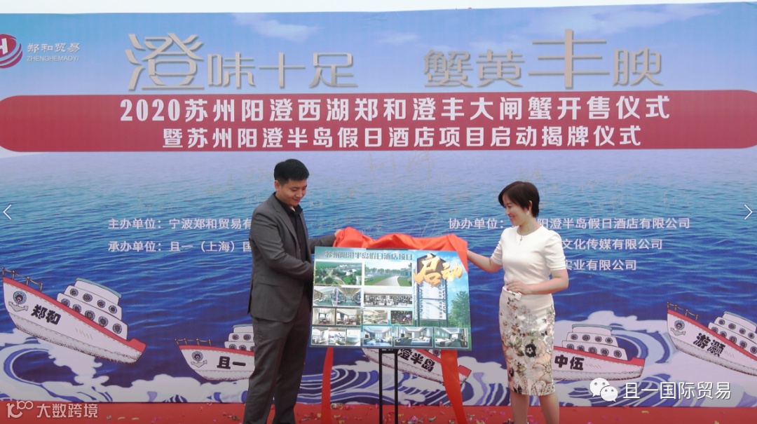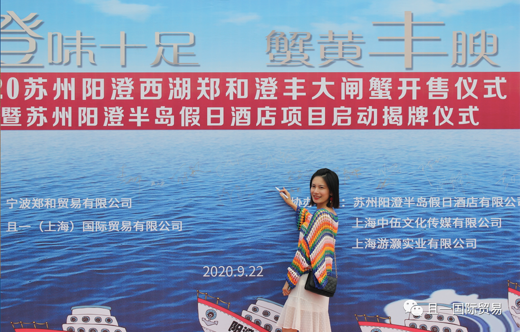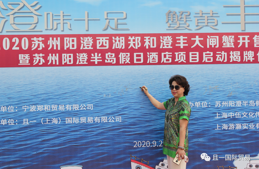 金秋时节,菊香蟹肥。9月22日上午,众多嘉宾聚首碧波荡漾的阳澄西湖湖畔,共同见证了由宁波郑和贸易有限公司携旗下且一(上海)国际贸易有限公司、苏州阳澄半岛假日酒店有限公司、上海中伍文化传媒有限公司、上海游灏实业有限公司共同举办的“2020苏州阳澄西湖郑和澄丰大闸蟹开售仪式暨苏州阳澄半岛假日酒店项目揭牌仪式”。