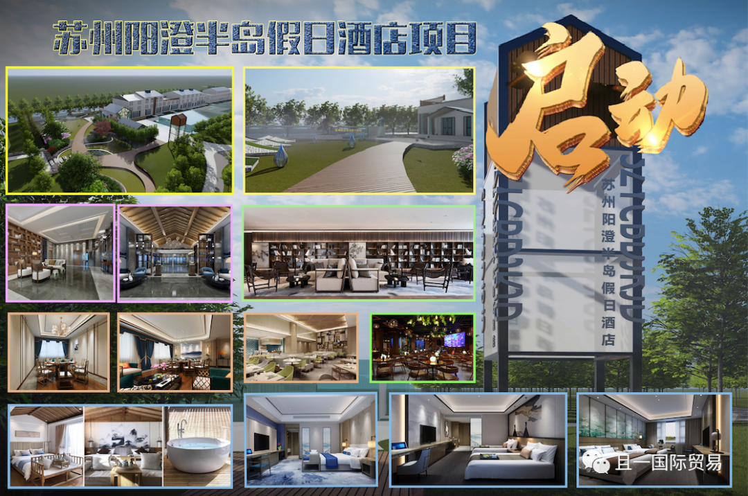 除了开售仪式外,宁波郑和贸易有限公司董事长游纪见先生与且一(上海)国际贸易有限公司总经理陈琼女士还共同为苏州阳澄半岛假日酒店项目揭牌。该项目地处苏州“阳澄湖生态旅游度假片区”内阳澄湖中心莲花岛上的忆园渔家码头,总规划面积近5000平米,集乐游、乐住、乐食三大功能板块,以阳澄湖水产特色为引领,设有84间现代中式风格的客房、大小型会议室、特色餐厅与包厢、音乐酒吧等,周边有千年古刹重元寺、华谊兄弟电影世界、沙家浜风景区等著名景点。建成后,将成为游人远离城市喧嚣和纷扰,品尝阳澄湖美味的绝佳度假休闲去处。