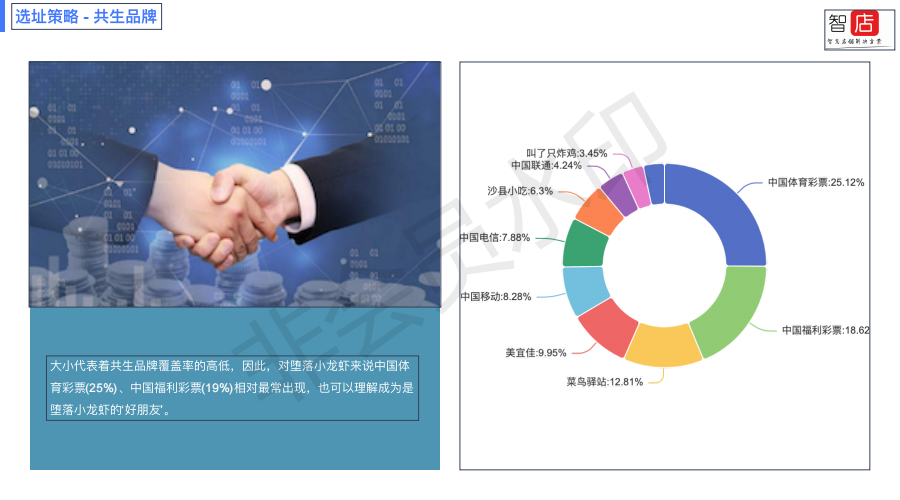 在业态中,少不了的是竞品和共品,堕落小龙虾品牌喜欢在彩票站点附近和零食小吃店附近开店,这与生活习惯有关系,在去购买彩票时,会忍不住去消费美食,或是打包拎走。