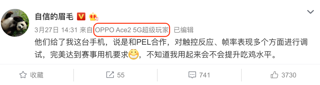 最后需要注意的是一个小细节,近日OPPO副总裁沈义人晒出的Ace 2微博小尾巴不再显示Reno的字样,不知道是否也意味着从OPPO Reno Ace 2开始,Ace系列就不再归属Reno系列下?现在就坐等4月份发布了~