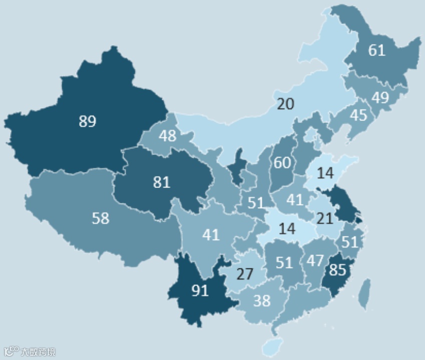 直观展示不同区域之间的差异和分布,比如某产品在各省市地区的市场占有率。