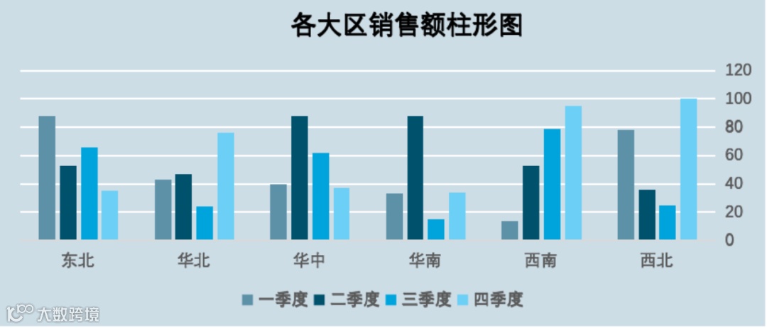 用来横向对比不同对象的表现,例如不同产品的月度销量。