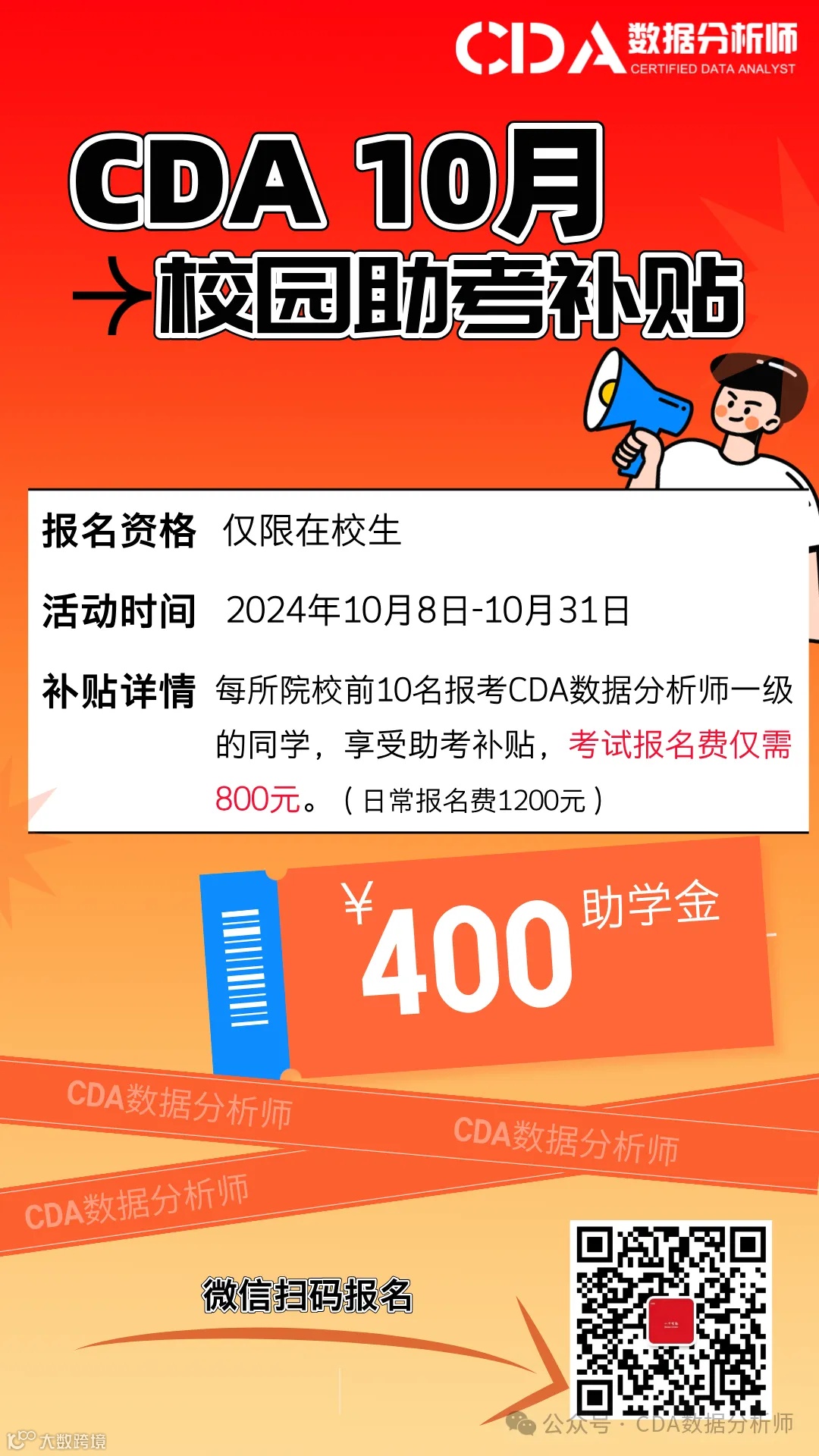 CDA 10月校园助考补贴活动火热进行中,这是只有在校生才能薅的羊毛,赶紧冲冲冲!