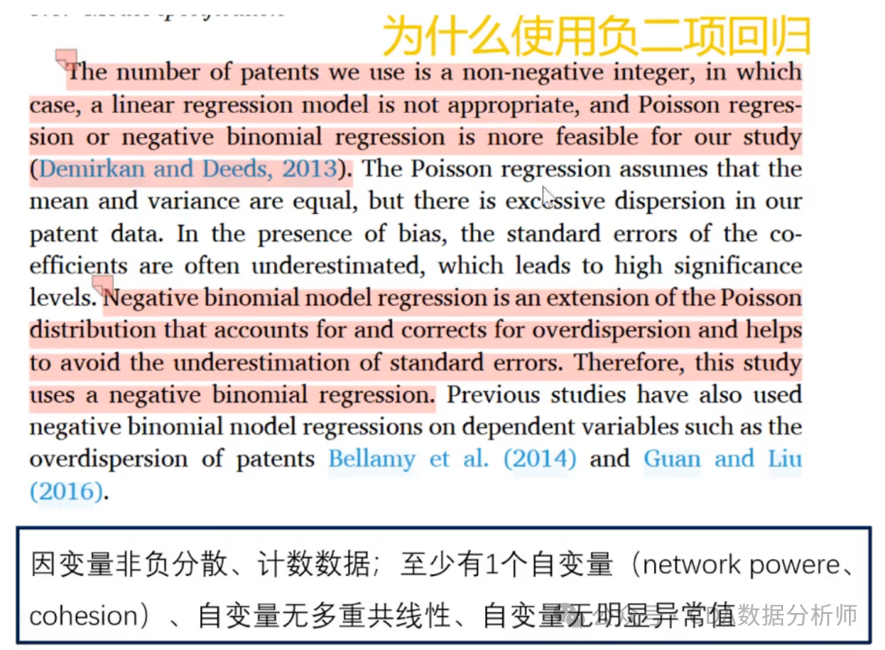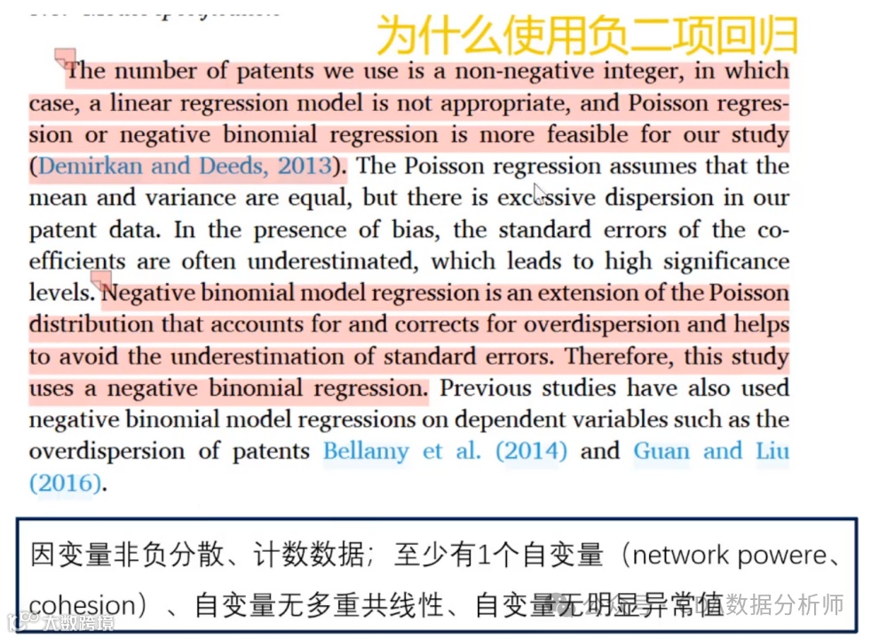 我们的核心被解释变量是非负整数,是离散的,因此线性回归模型不适用,而泊松分布和负二项分布更为合适。最终选择负二项分布是因为它是泊松分布的扩展,能很好地处理被解释变量的分散性。