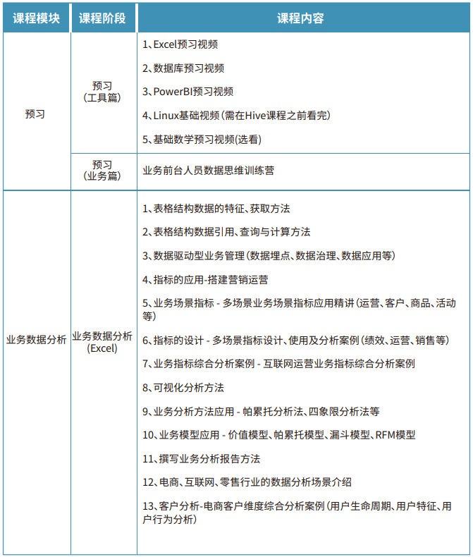 您无需担心专业背景,文科商科出身亦可轻松入学。数据分析是数据科学中对专业背景要求较低、薪资待遇提高最快的领域之一。本课程旨在帮助您降低数据领域的门槛,通过专业技能的传授和实战项目的实践,助您快速掌握业务数据分析所需技能。重点培养Excel、MySQL、Power BI等软件操作技能,数据清洗与可视化能力,以及独立撰写业务报告的技巧。