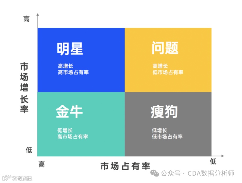 矩阵分析法是指根据事物的两个重要属性作为分析的依据,进行分类关联分析,找出解决问题的一种分析方法,也称为矩阵关联分析法,简称矩阵分析法,其中,最有名的就是波士顿矩阵(BCG Matrix,Matrix: Boston Consulting Group)。