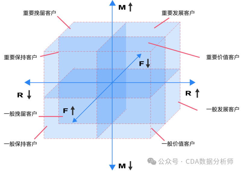 RFM是3个指标的缩写,通过这3个指标对用户分类: